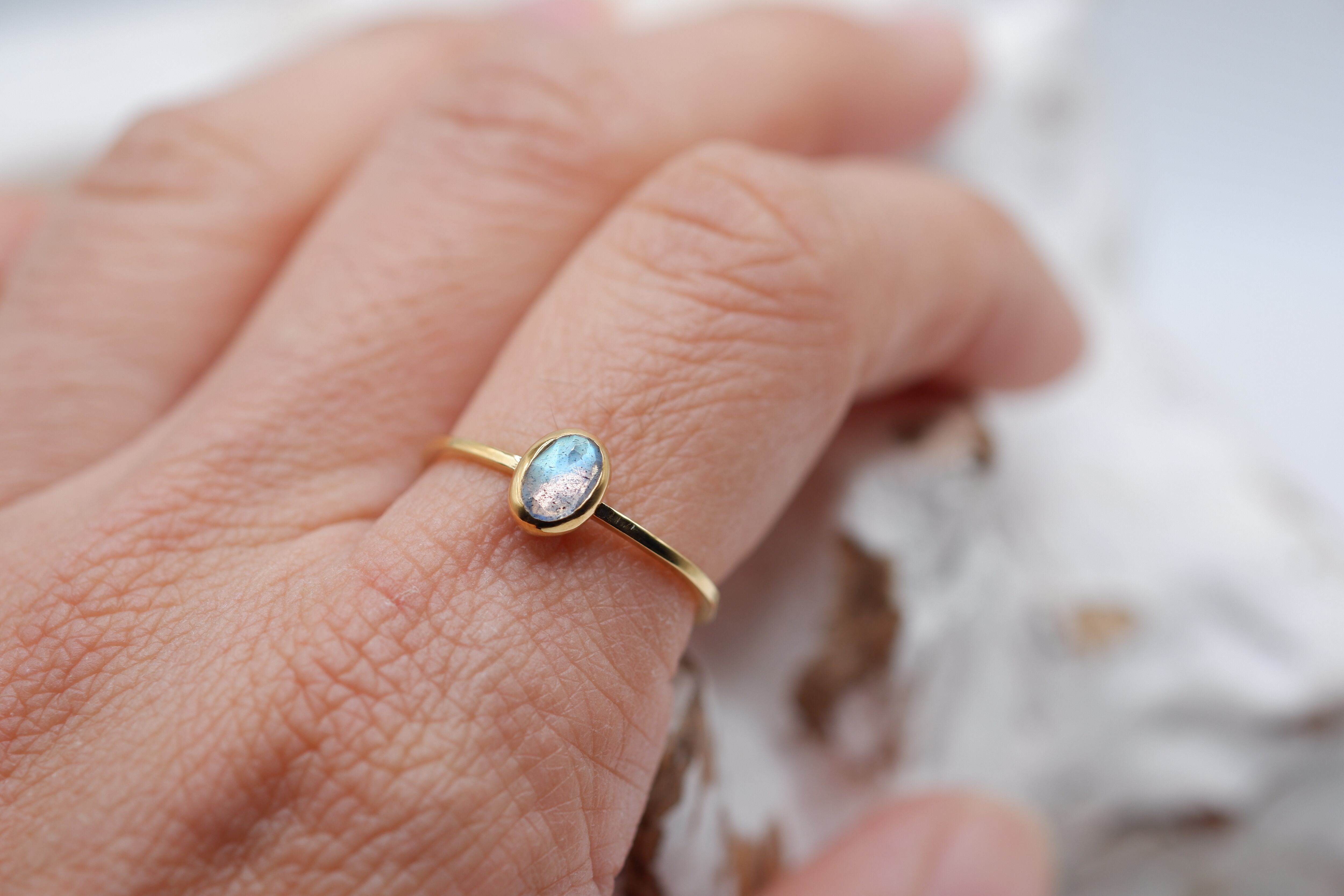 洗練されたデザインのColore Rosecut ring(ラブラドライト)。