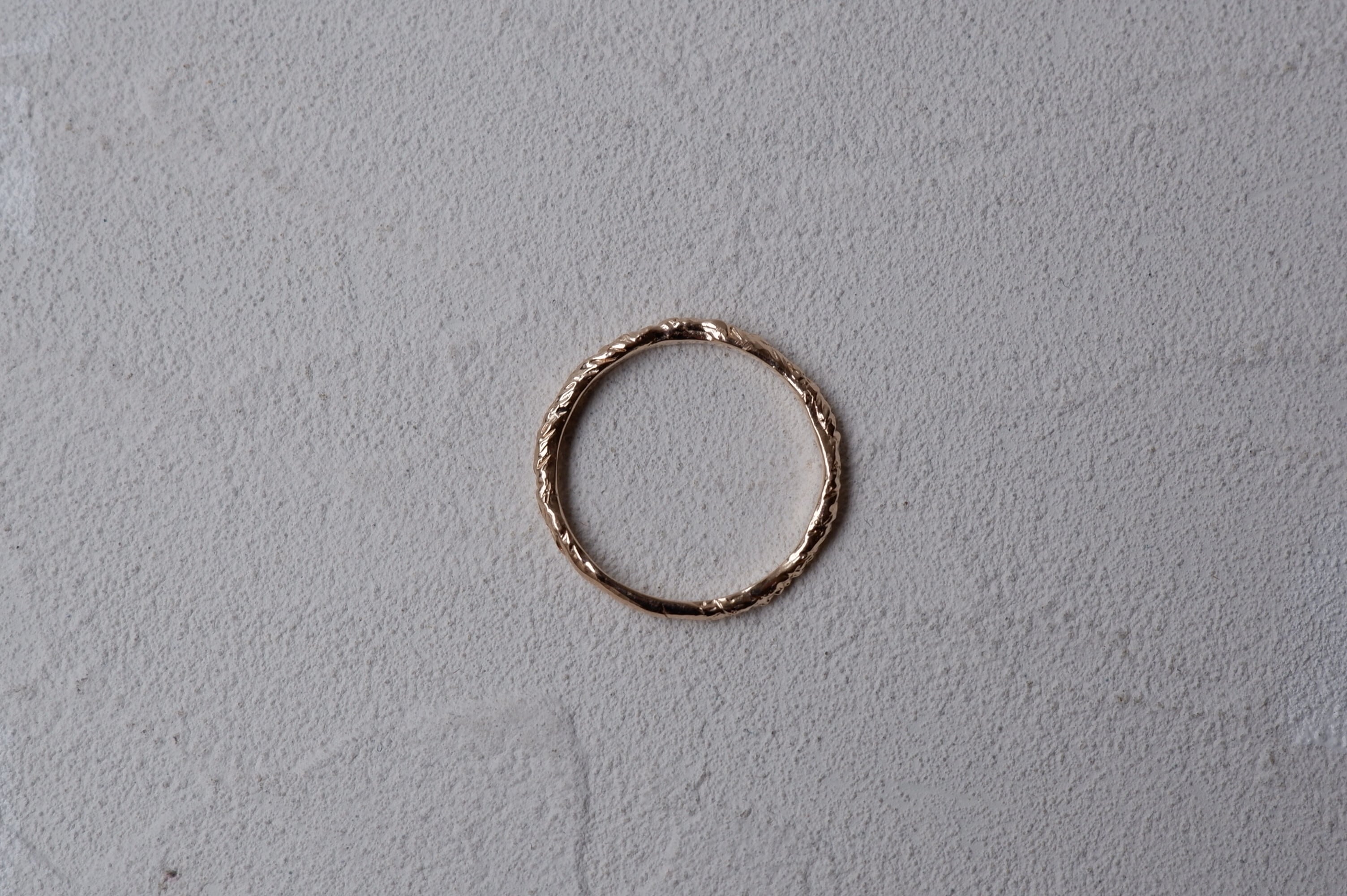 表面加工の筋感が光を屈折させてくれ、キラキラと輝く指輪となりました。テクスチャーによりアンティークの様な温かみのあるデザインとなっております。常に着けていられるような邪魔にならない指輪です。